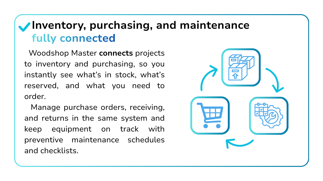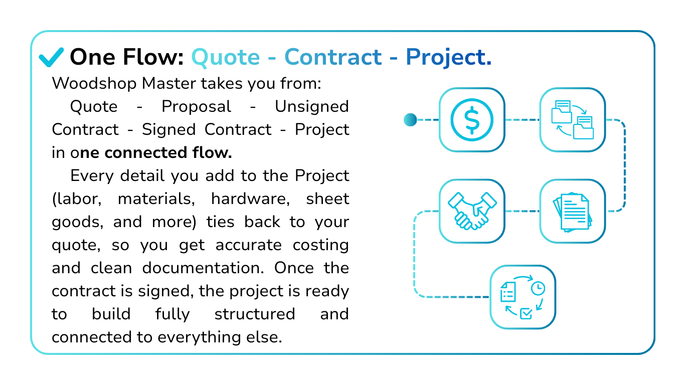 Woodshop Master was built from that reality, not from a boardroom, to bring clarity back to the shop. One system. One source of truth. Less chaos, fewer surprises, and more time on the bench.”